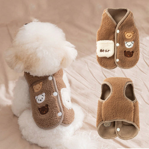 1 個 / 2 個セット ベルベット製ペットベスト + パッド 2 本脚漫画柄ペットジャケット 秋冬用 小型犬・猫対応